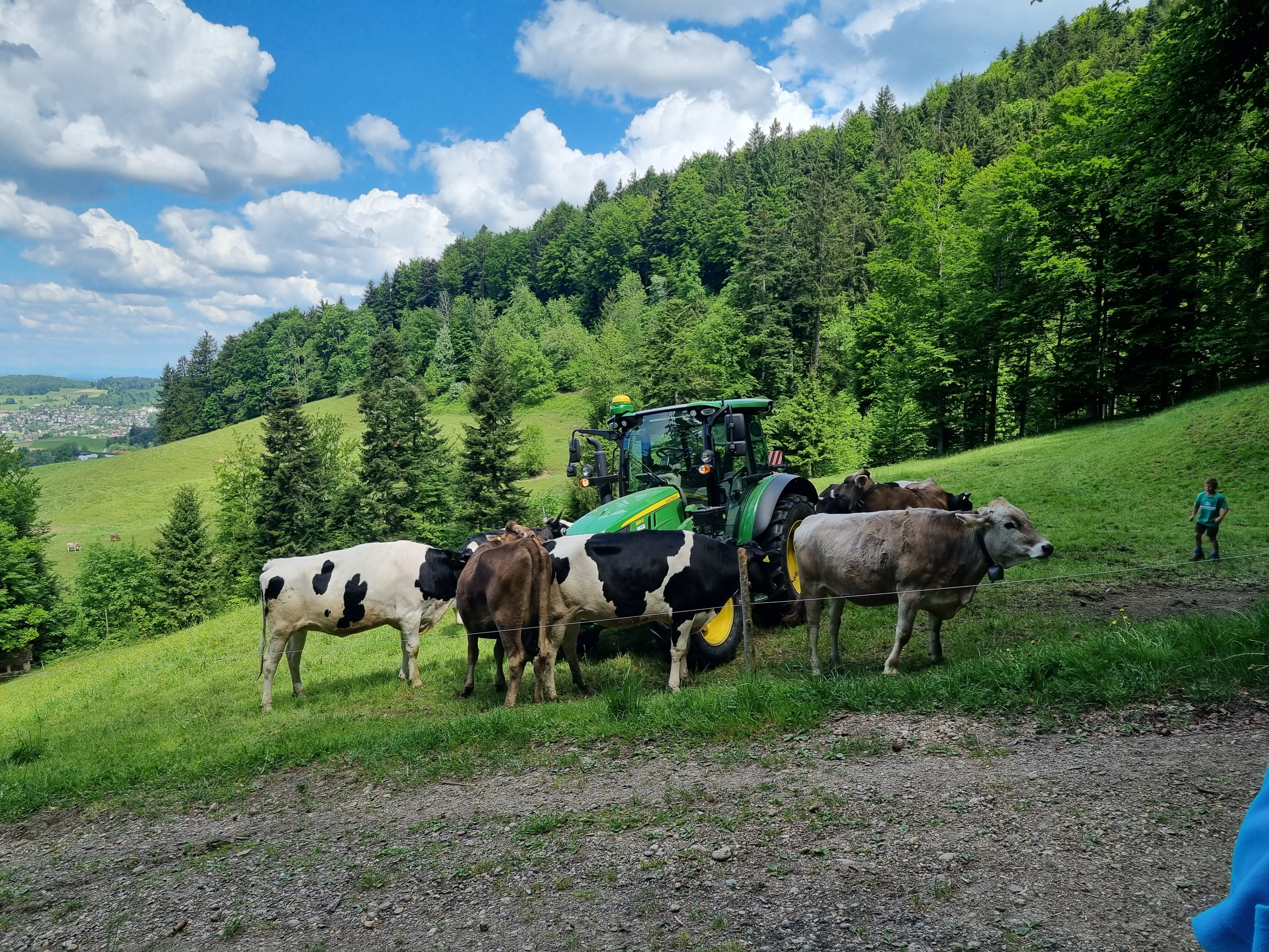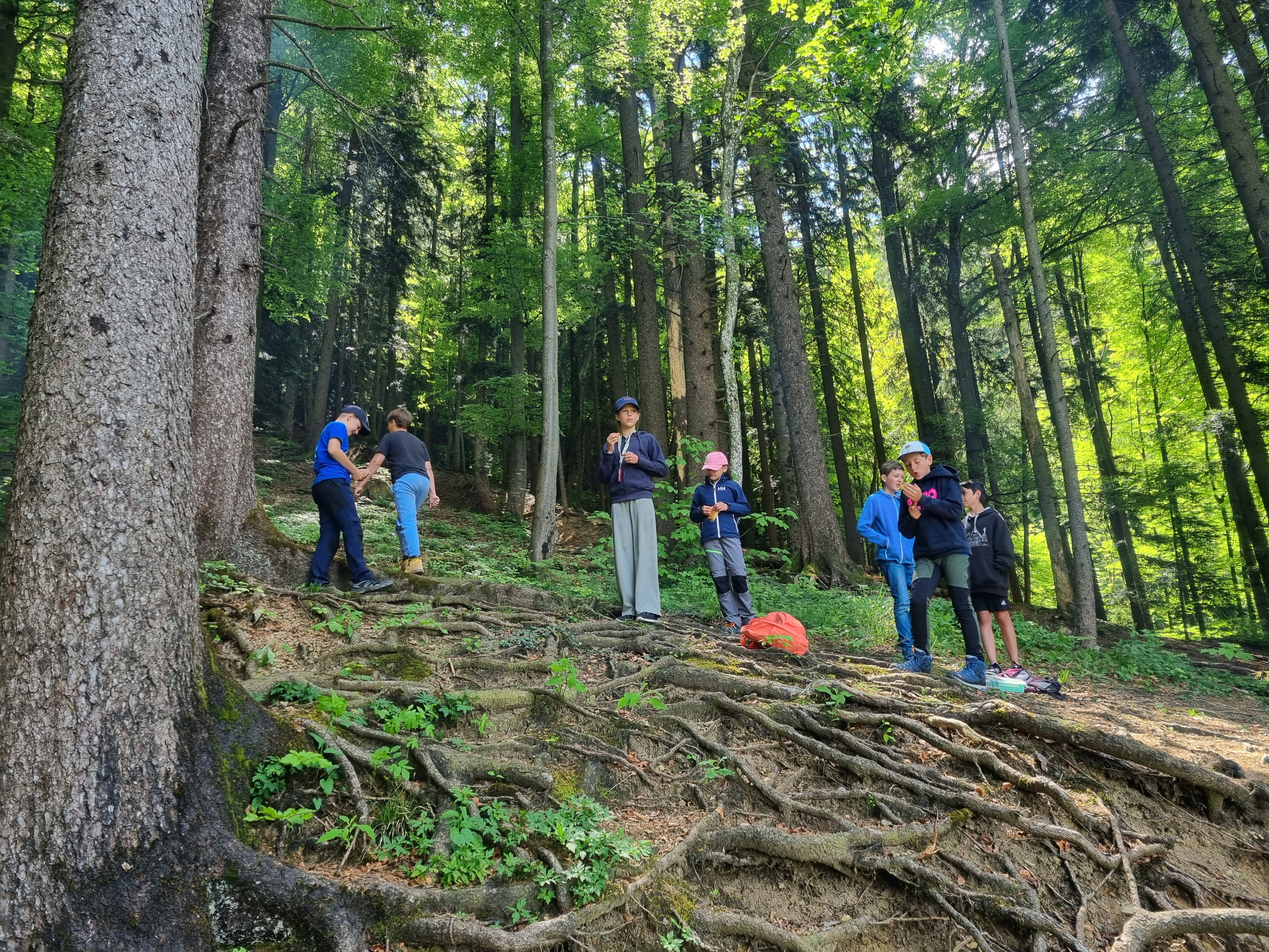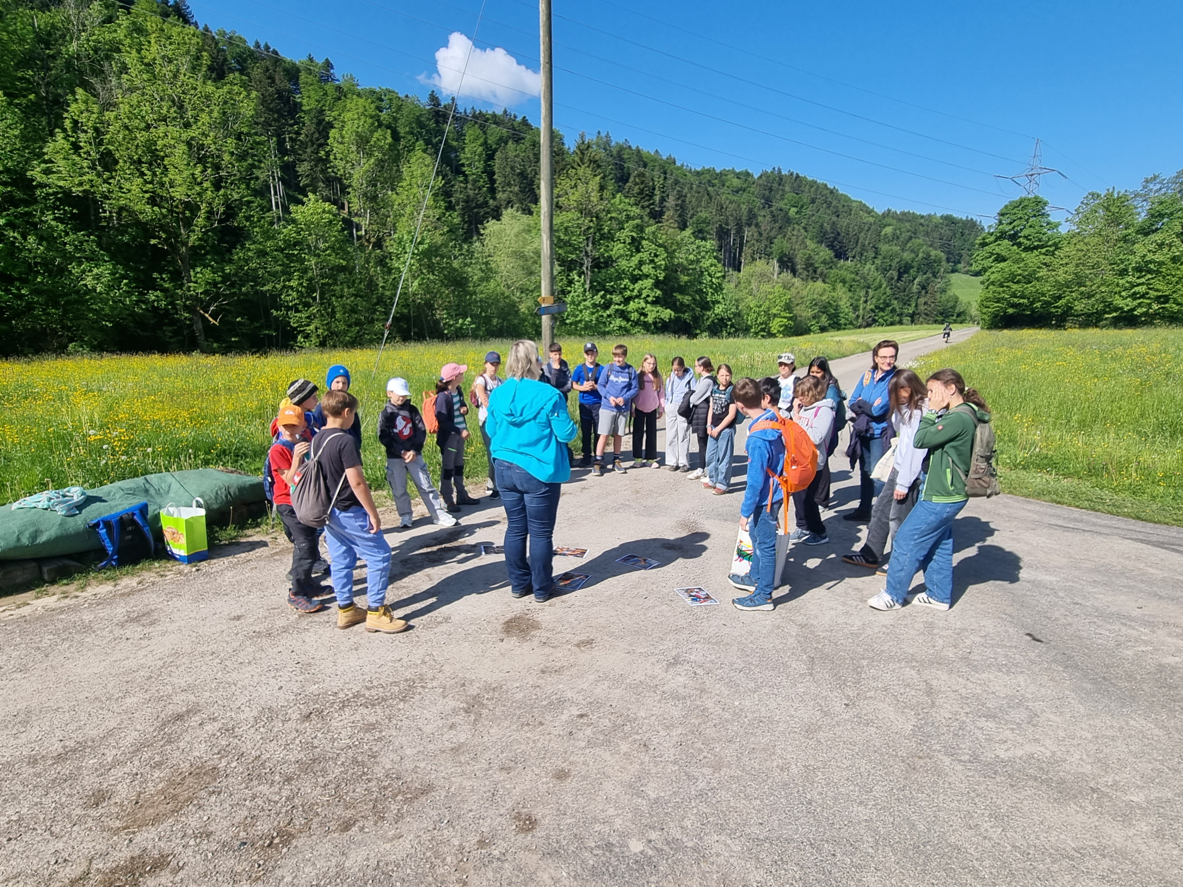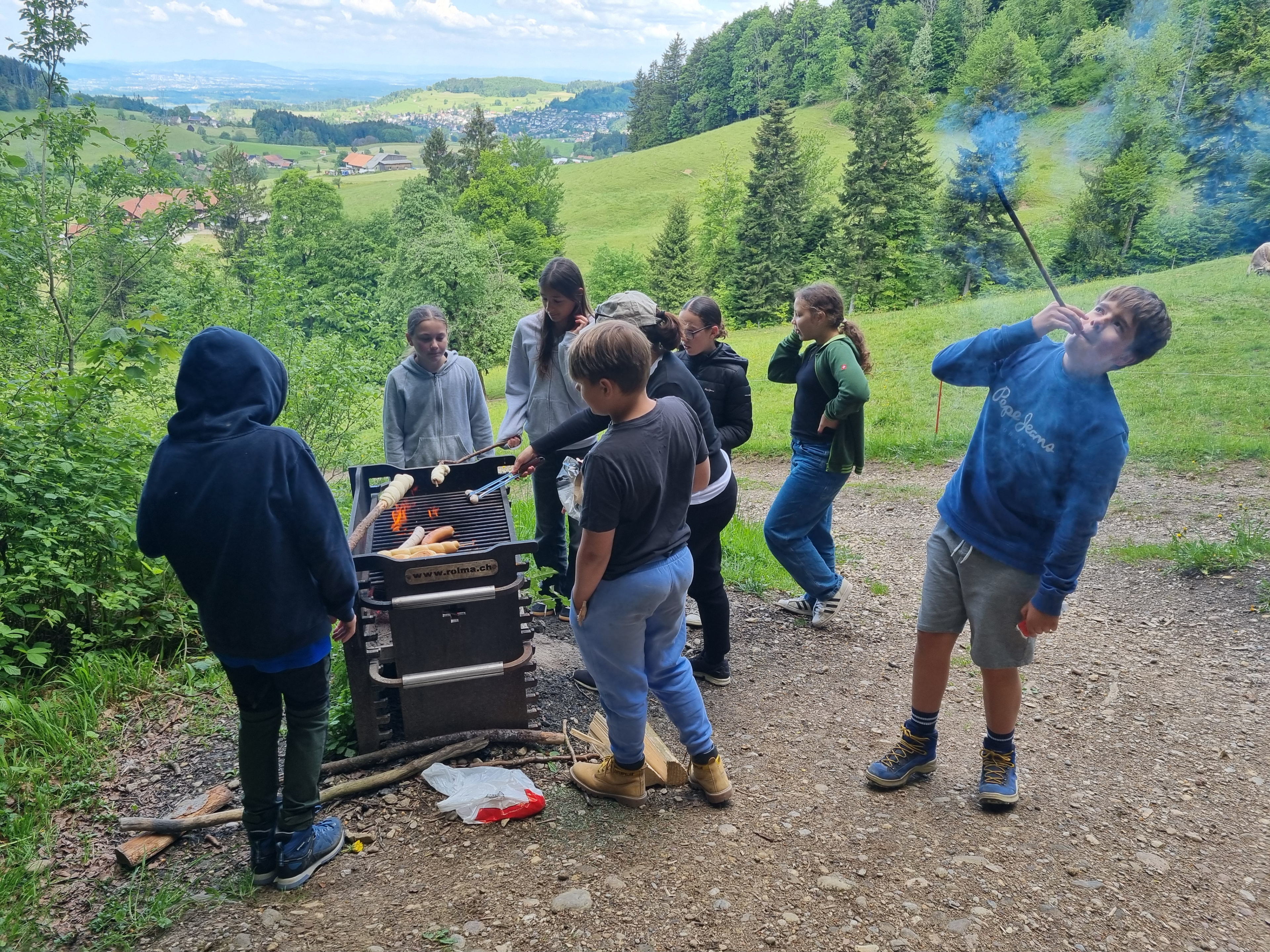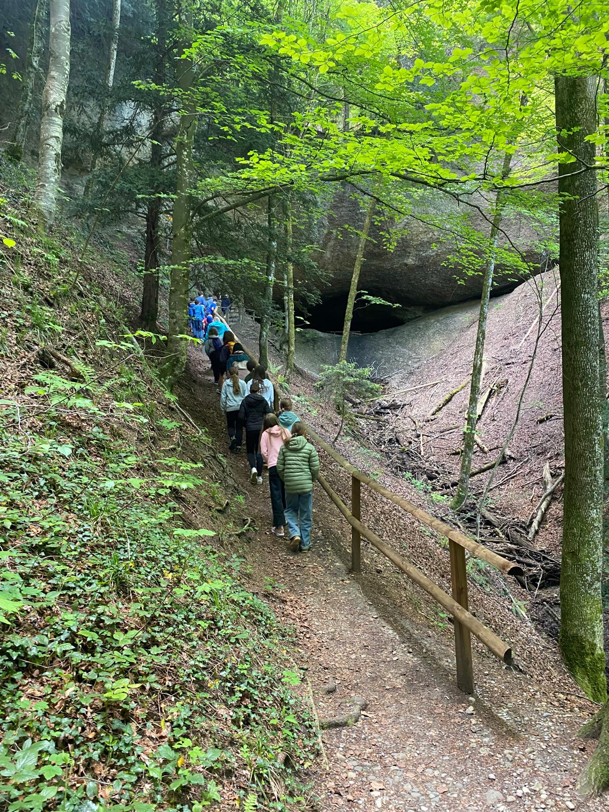 Pünktlich um 9.15 Uhr fuhr eine fröhliche Gruppe von 5. und 6. Klässlern mit ihren Katechetinnen und weiteren Begleitpersonen nach Bäretswil zur Täuferhöhle. Bereits am Abend vorher wurde über die Reformation mit Huldrych Zwingli und die Täuferbewegung gesprochen. Die Rucksäcke gut gefüllt, ging es dann einen steileren Wanderweg hinauf vorbei an Kuhweiden mit spektakulärer Aussicht, zur Täuferhöhle. Unterwegs wurden von Martina Graf und Manuela Labahn, verschiedene Inputs zu den kriegerischen Auseinandersetzungen der damaligen Zeit, zur Reformation und zum „Fasten“ gegeben. Die Kinder machten fleissig mit und am Mittag gab es dann einen Wettbewerb zu dem Gesagten. Klar, stand auch Spiel und Spass auf dem Programm - die Jungs versetzten sich sogleich in diese Zeit H. Zwinglis und tummelten sich im Wald. Feuer war auch zur damaligen Zeit überlebenswichtig; die Würste und Marshmallows schmecken gebrätelt einfach am besten! Sogar die Kühe staunten, ob all der Ausgelassenheit!