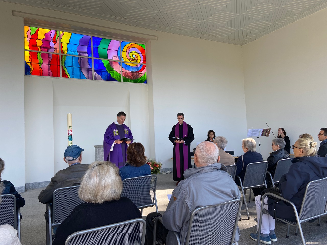 Zur schlichten und eindrücklichen Feier bei strahlendem Sonnenschein begrüssten Pfarrer Mathias Zihlmann (kath.) und Marc Stillhard (ref.) am Samstagmorgen, 6. September rund 30 Angehörige und Gäste in der offenen Friedhofshalle.