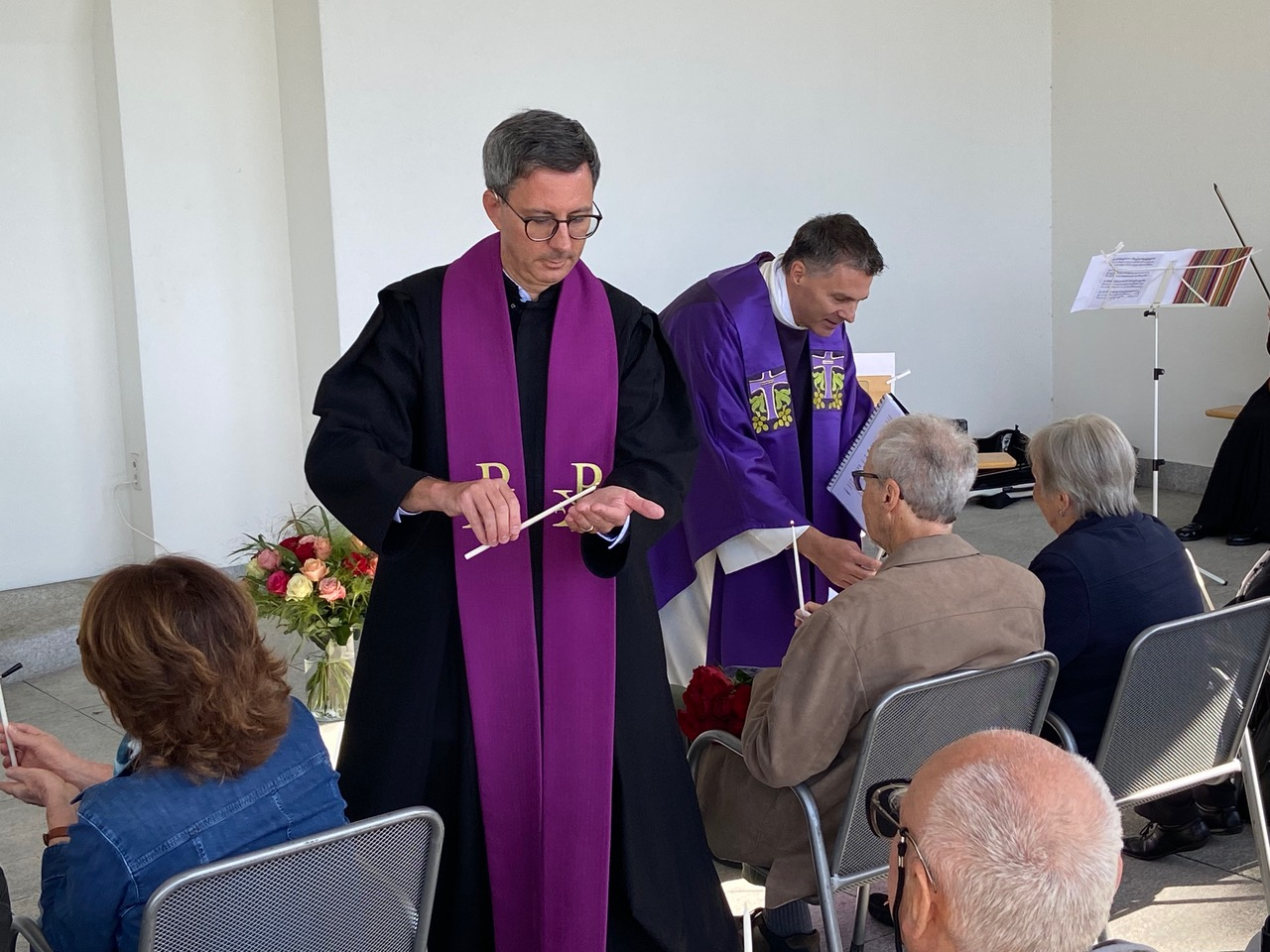 Im ersten Teil der Feier, musikalisch umrahmt von Wayumi Weiss, Piano, und Yuliia Shulha, Violine, erinnerten die beiden Pfarrpersonen an die Doppelbedeutung des Wortpaares «aufheben – aufgehoben sein» und an die Bedeutung des Begriffs «Nähe», der im christlichen Sinn weit mehr bedeutet als örtliche Nähe.