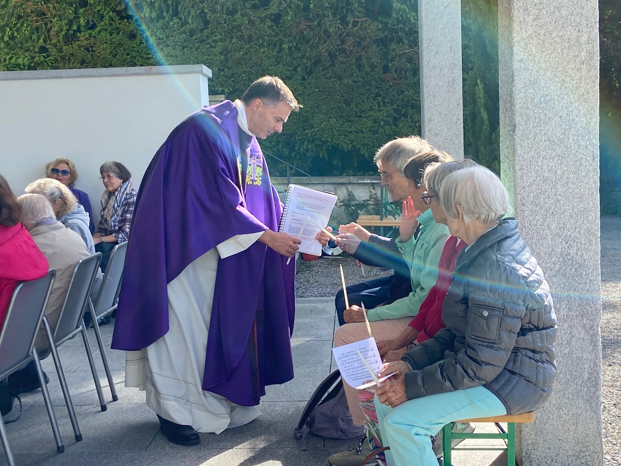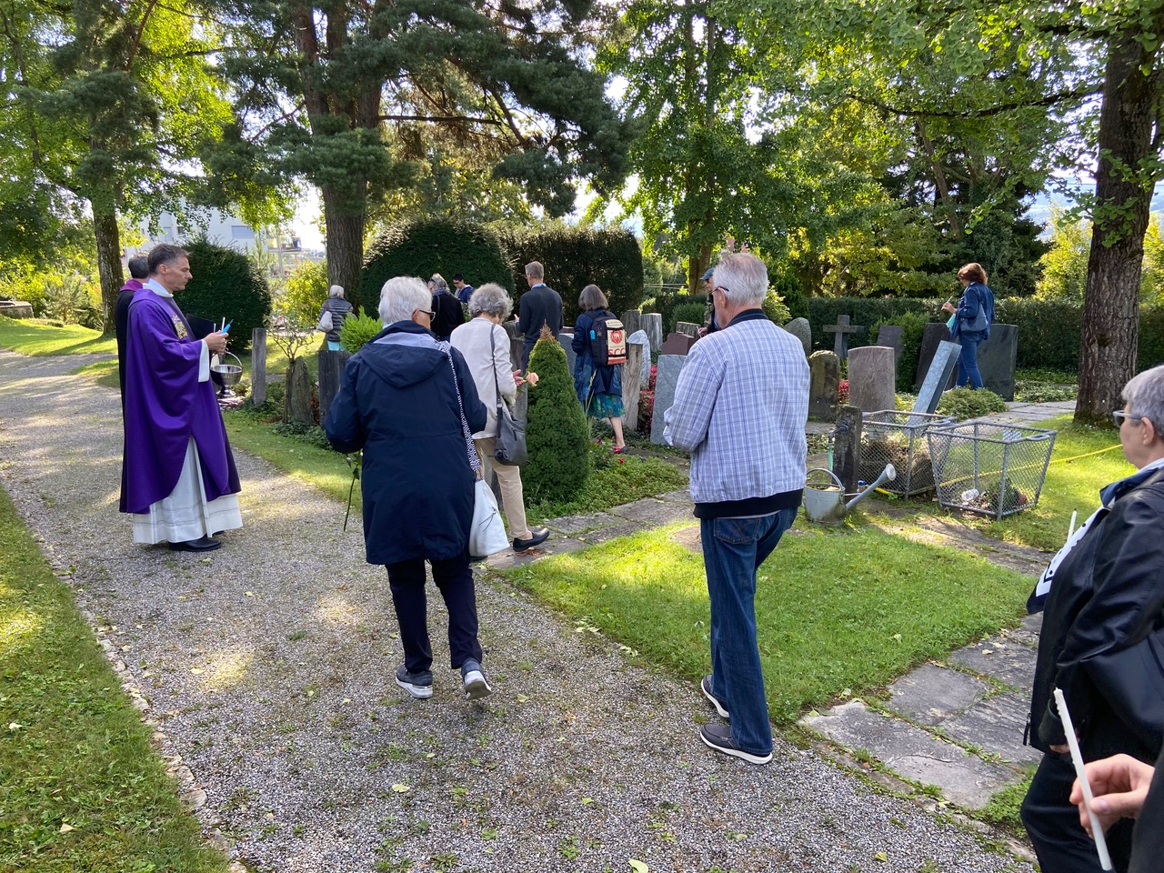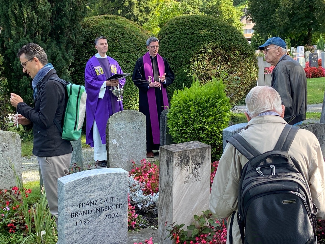 Zum zweiten Teil der schlichten, eindrücklichen Feier begaben sich alle Teilnehmenden mit einer Kerze und einer Rose hinunter zum Gräberfeld, wo Pfarrer Mathias Zihlmann die Gräber ein letztes Mal einsegnete. Mit brennendem Licht und Rose auf dem Grab verabschiedeten sich die Angehörigen – nun ein zweites Mal – von ihren Lieben. Im Wissen und in der Überzeugung, dass Gedenken und Nähe auch ohne irdischen Ort möglich sind und weiterbestehen.
