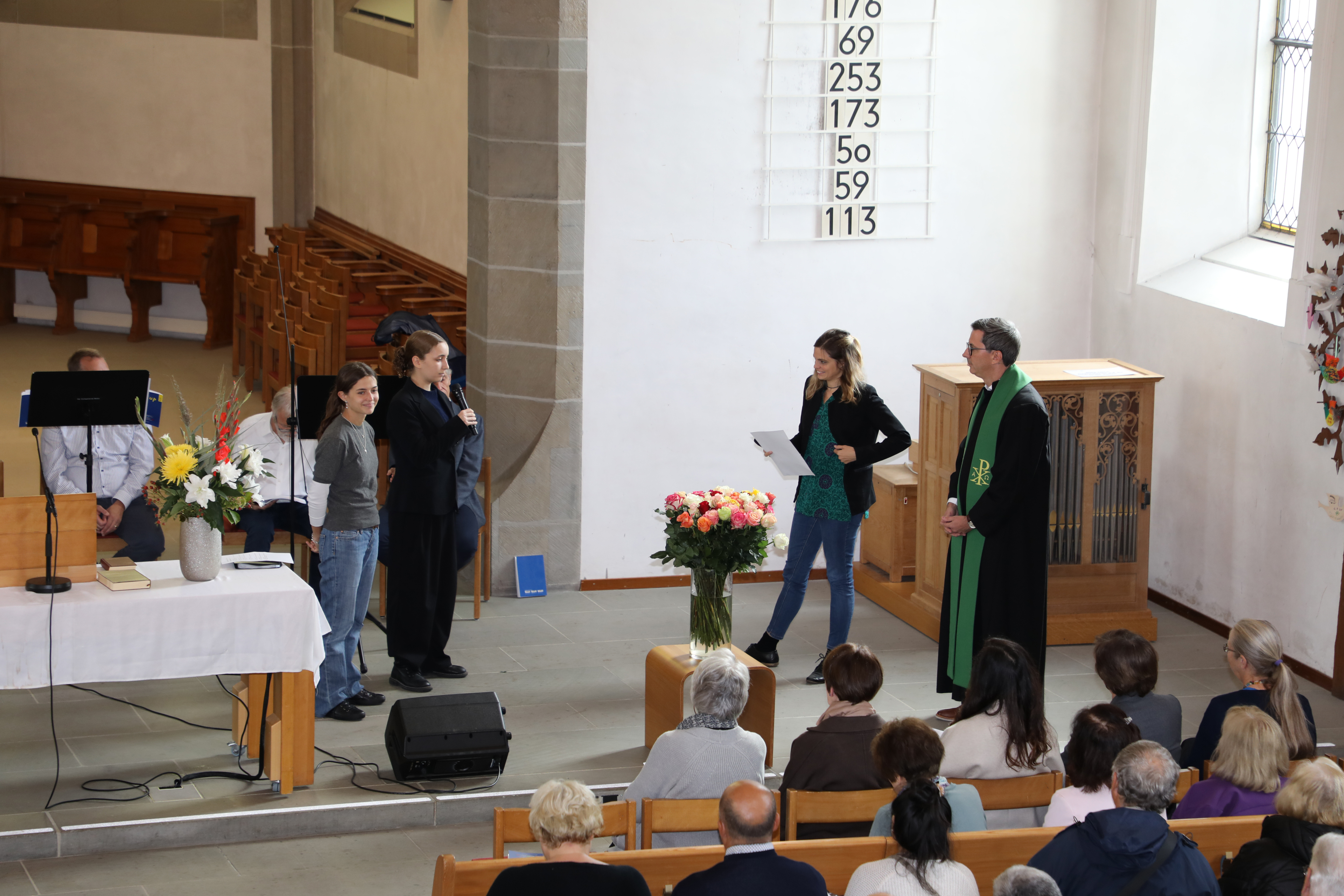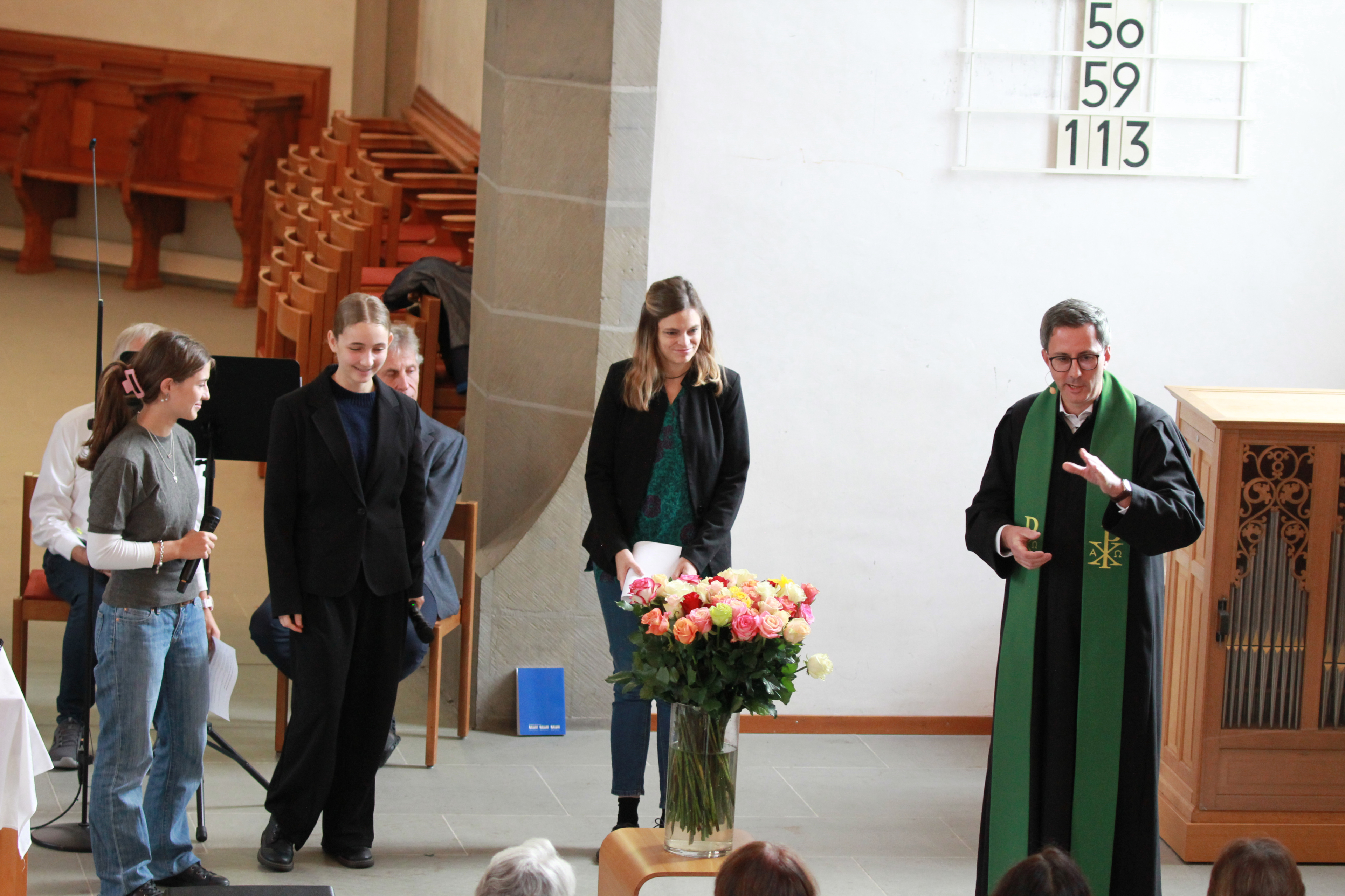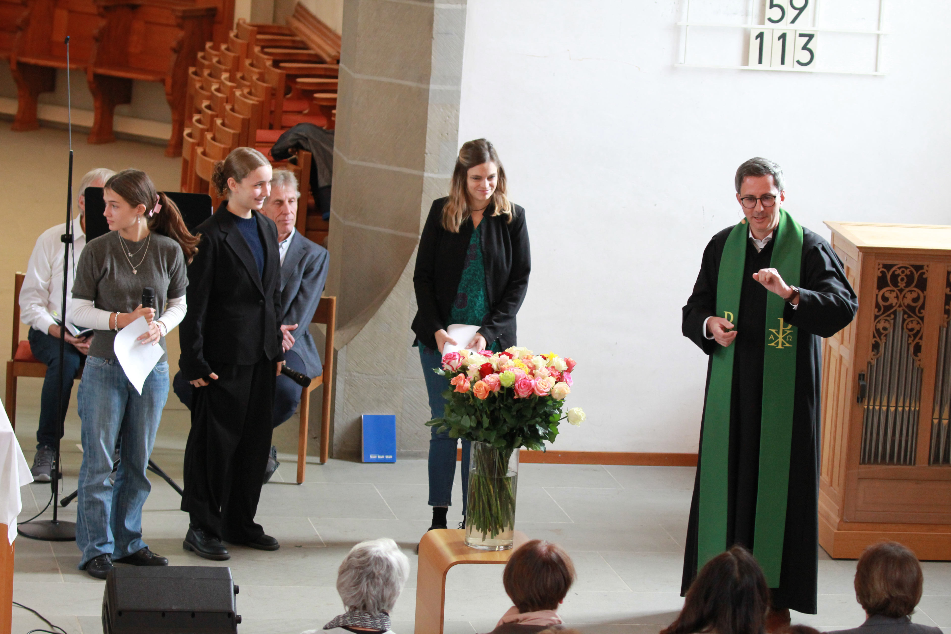 Der Gottesdienst verband Musik, Predigt und persönliche Beiträge. Bereits konfirmierte Jugendliche berichteten von ihrem vergangenen Konfjahr, neue Konfirmandinnen und Konfirmanden wurden willkommen geheissen. Besonders eindrücklich und bewegend war, was Mitarbeitende und Teilnehmende des Café Grüezi über ihre Hintergründe, ihre Erfahrungen und ihr Engagement erzählten.