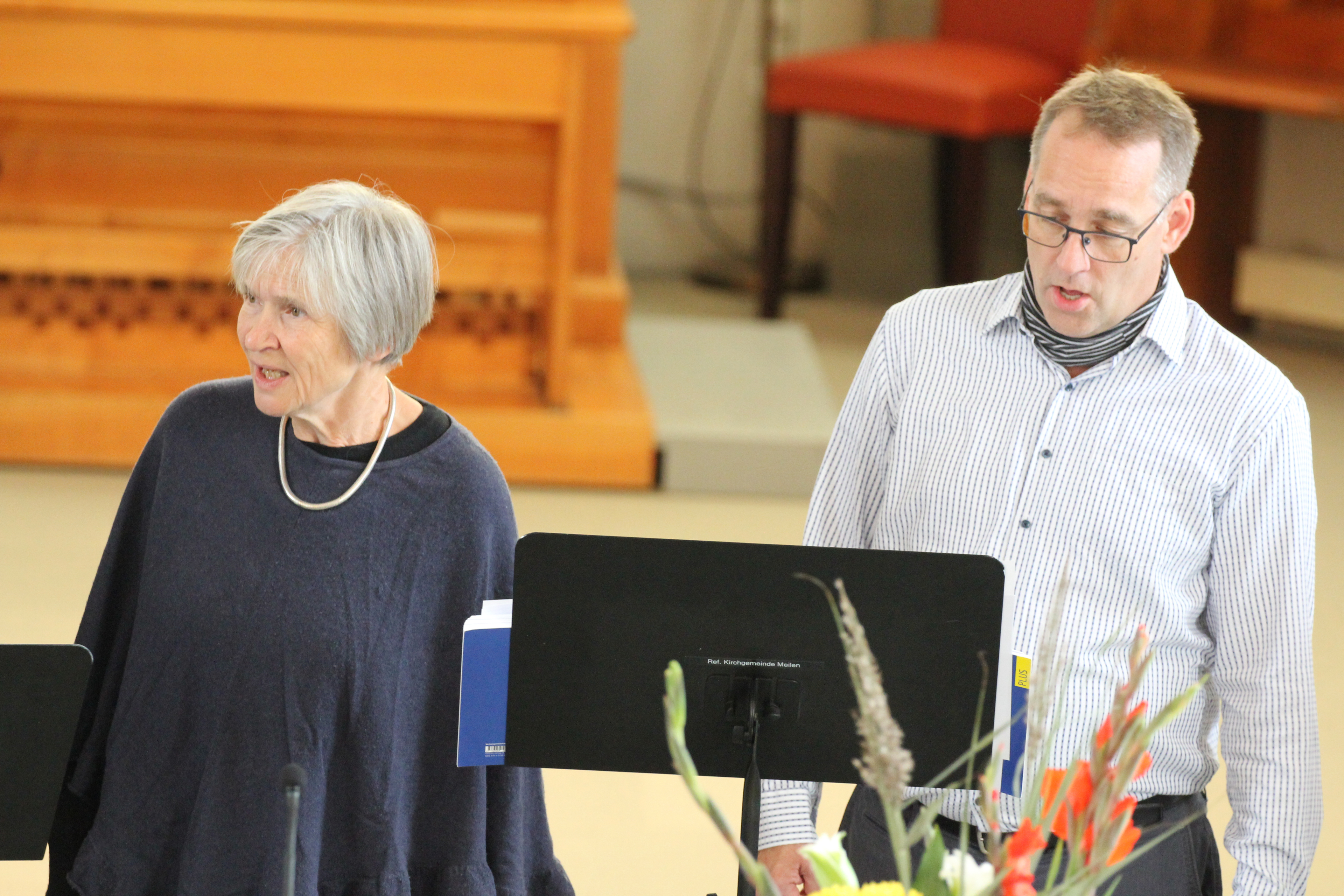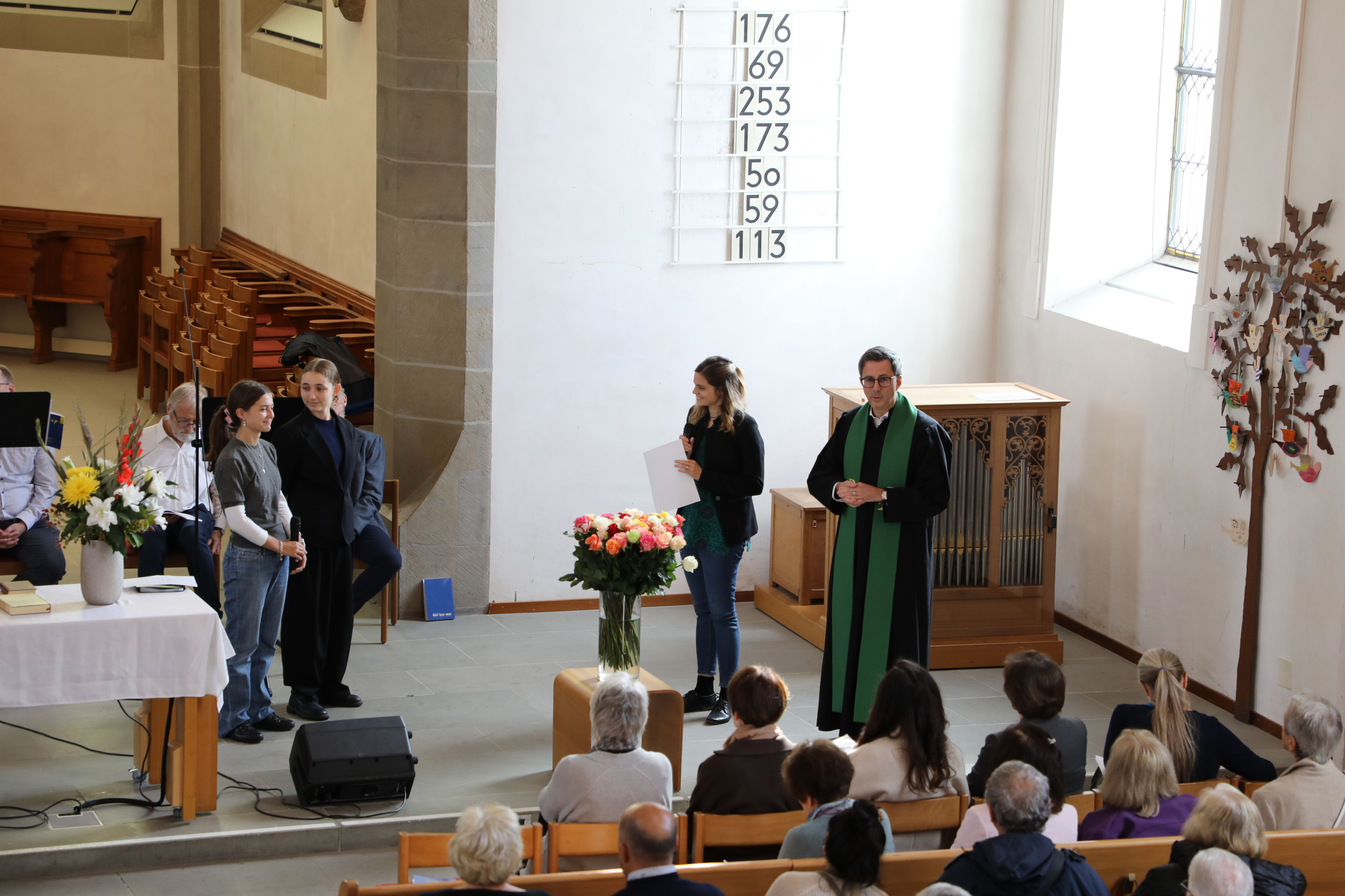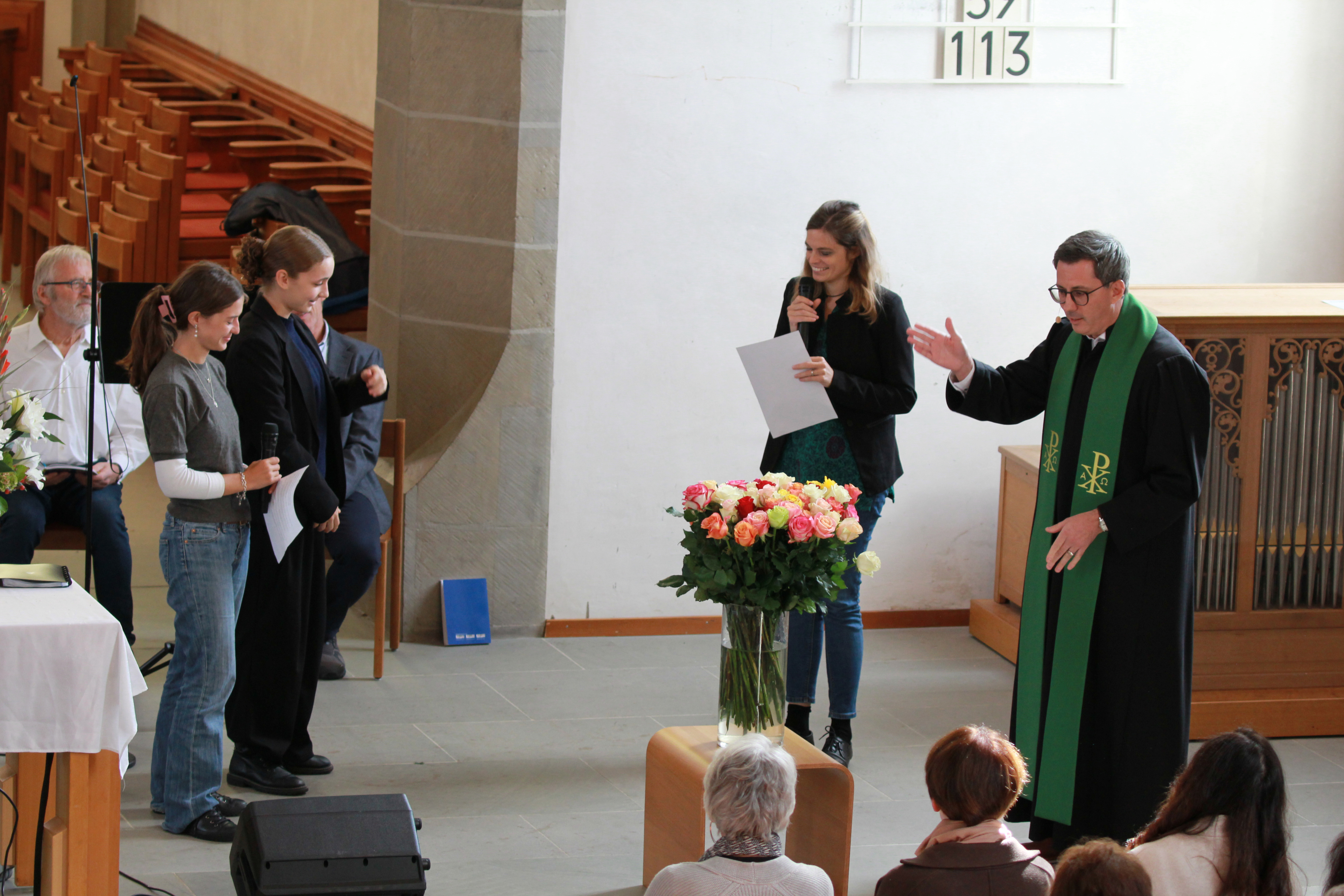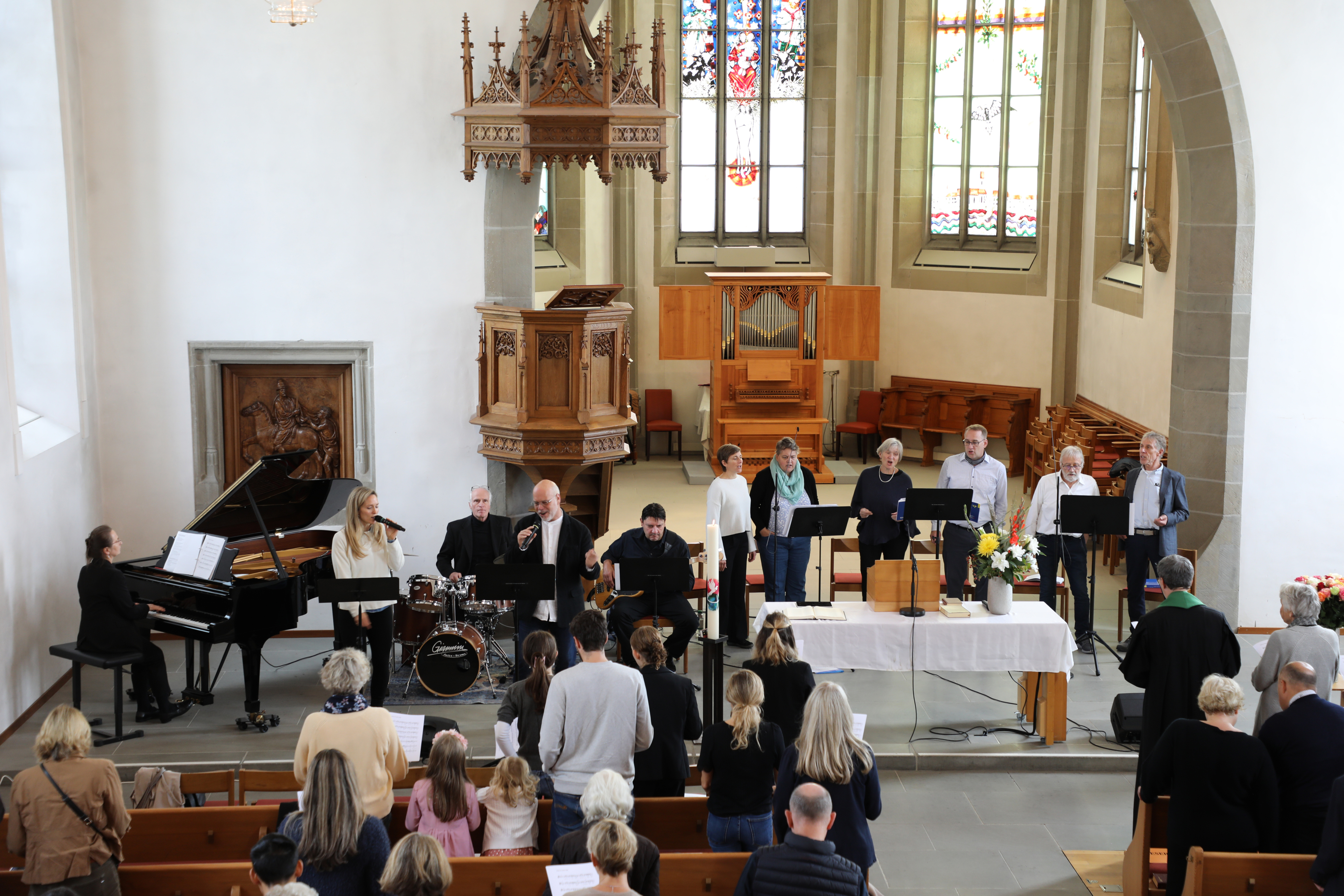 Der Gottesdienst verband Musik, Predigt und persönliche Beiträge. Bereits konfirmierte Jugendliche berichteten von ihrem vergangenen Konfjahr, neue Konfirmandinnen und Konfirmanden wurden willkommen geheissen. Besonders eindrücklich und bewegend war, was Mitarbeitende und Teilnehmende des Café Grüezi über ihre Hintergründe, ihre Erfahrungen und ihr Engagement erzählten.