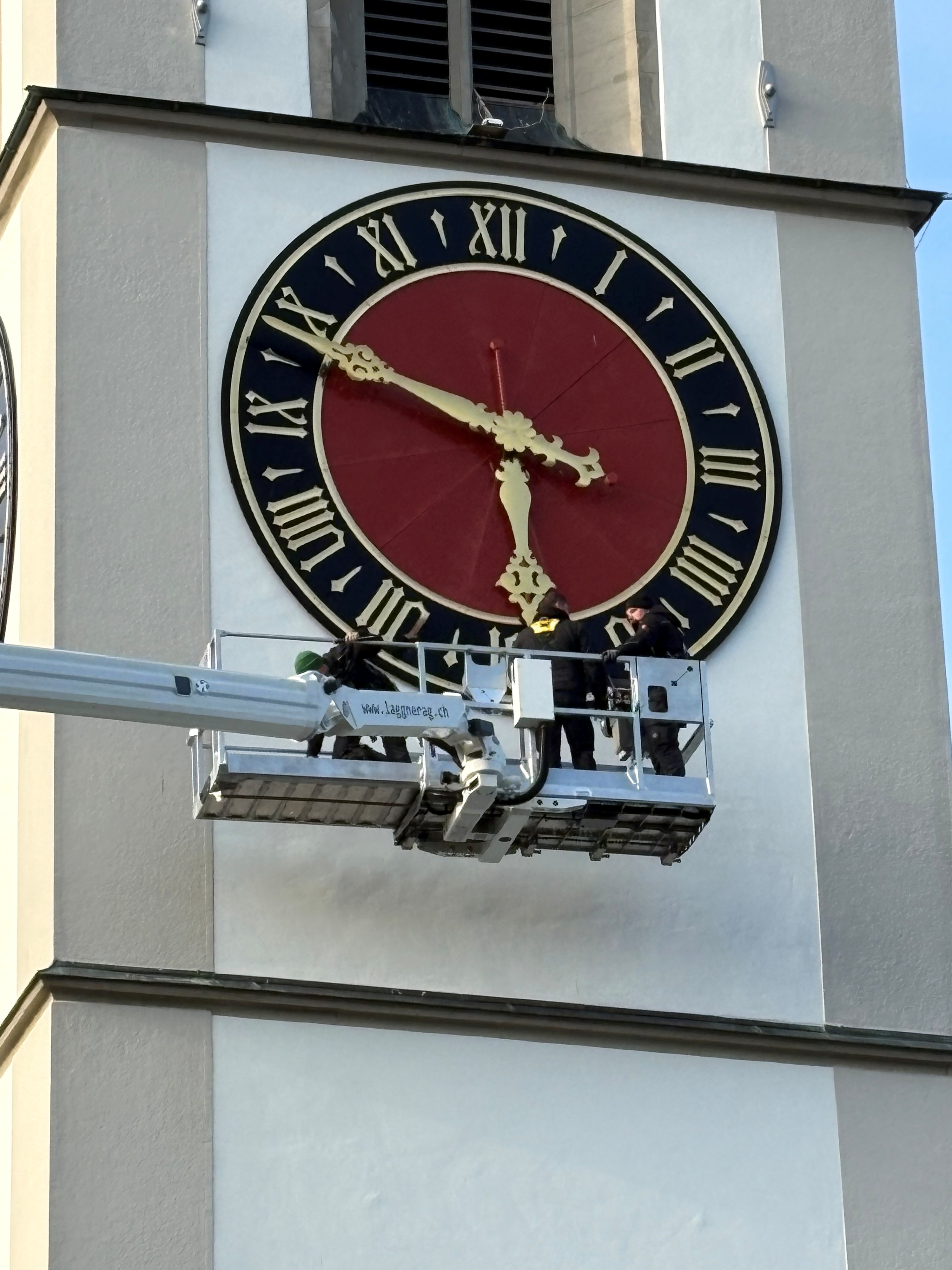 Zur Stunde kann noch nicht gesagt werden, wann die vergoldeten Ziffern und die Zeiger für die Montage bereit sein werden.