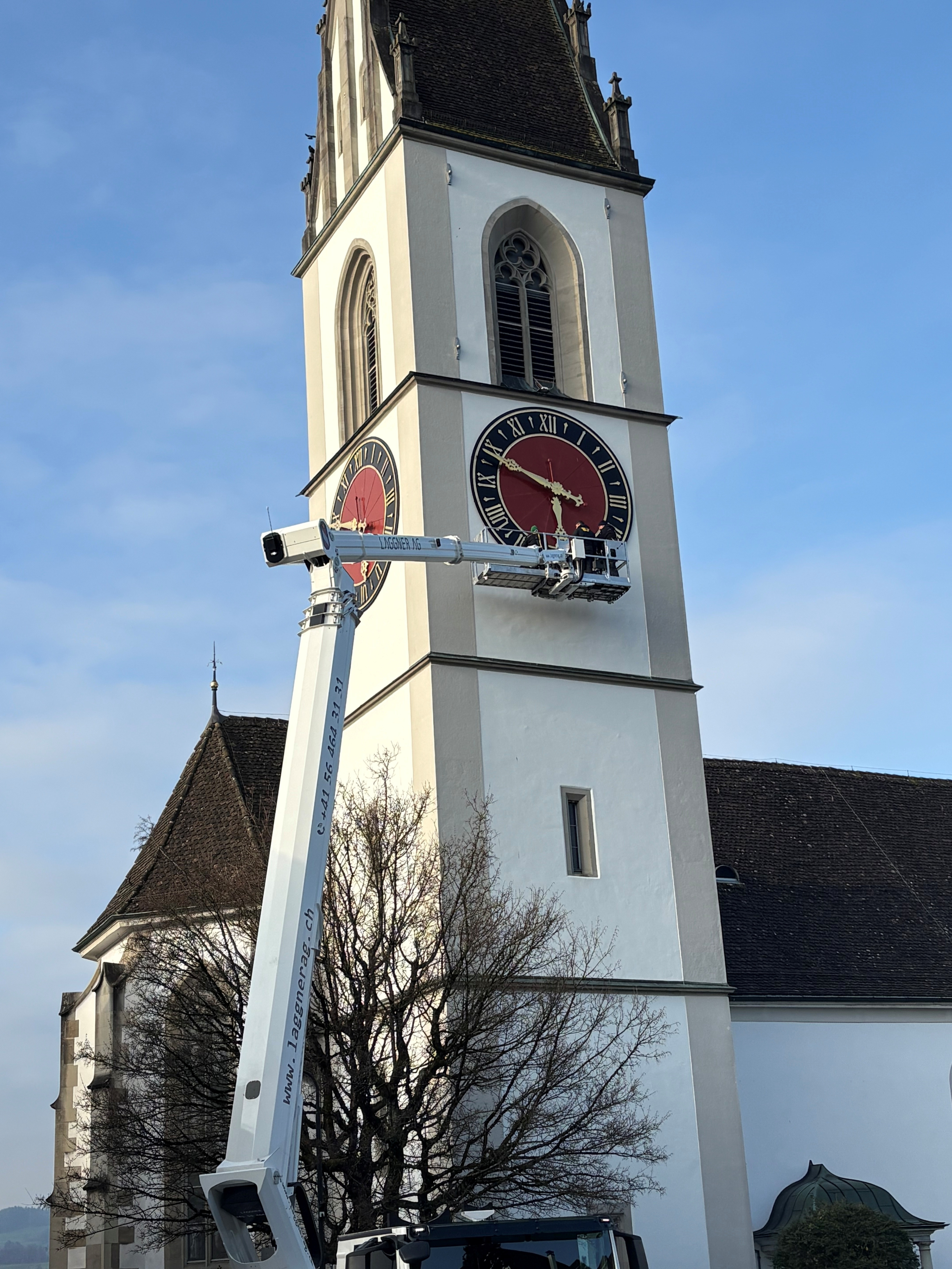 Um Turmuhr und Schlagwerk rasch wieder in Betrieb nehmen zu können, wurden die beschädigten Teile am 2. April von Fachspezialisten der Firma Rüetschi Aarau demontiert und in Sicherheit gebracht.